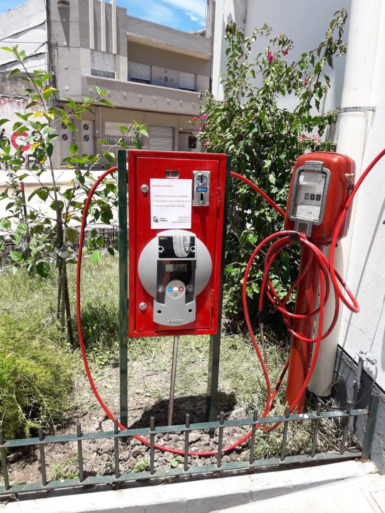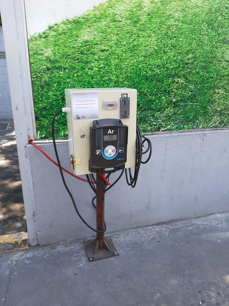 Estos equipos brindan aire por un lapso de tiempo determinado, el cual se habilita a través de la inserción de monedas. Cuentan con display indicador que nos enseña el tiempo restante de acción.